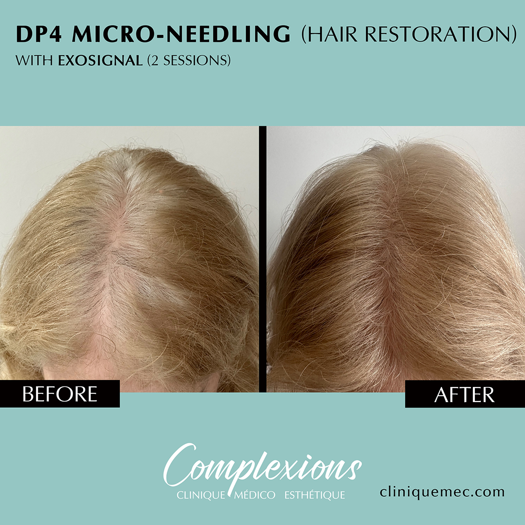 The Technology: Exosome Therapy and Medical Microneedling of the scalp to re-awaken dormant follicles and extend the growth (anagen) phase.