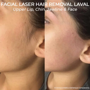 Laser hair removal Face Laval is one of the most requested treatments for people dealing with unwanted facial hair on areas such as the upper lip, chin, jawline, cheeks, sideburns, and neck. At Clinique Médico Esthétique Complexions, facial laser treatments are customized according to the treatment area, hair density, skin tone, and individual concerns such as hormonal hair growth, ingrown hairs, or shaving irritation.